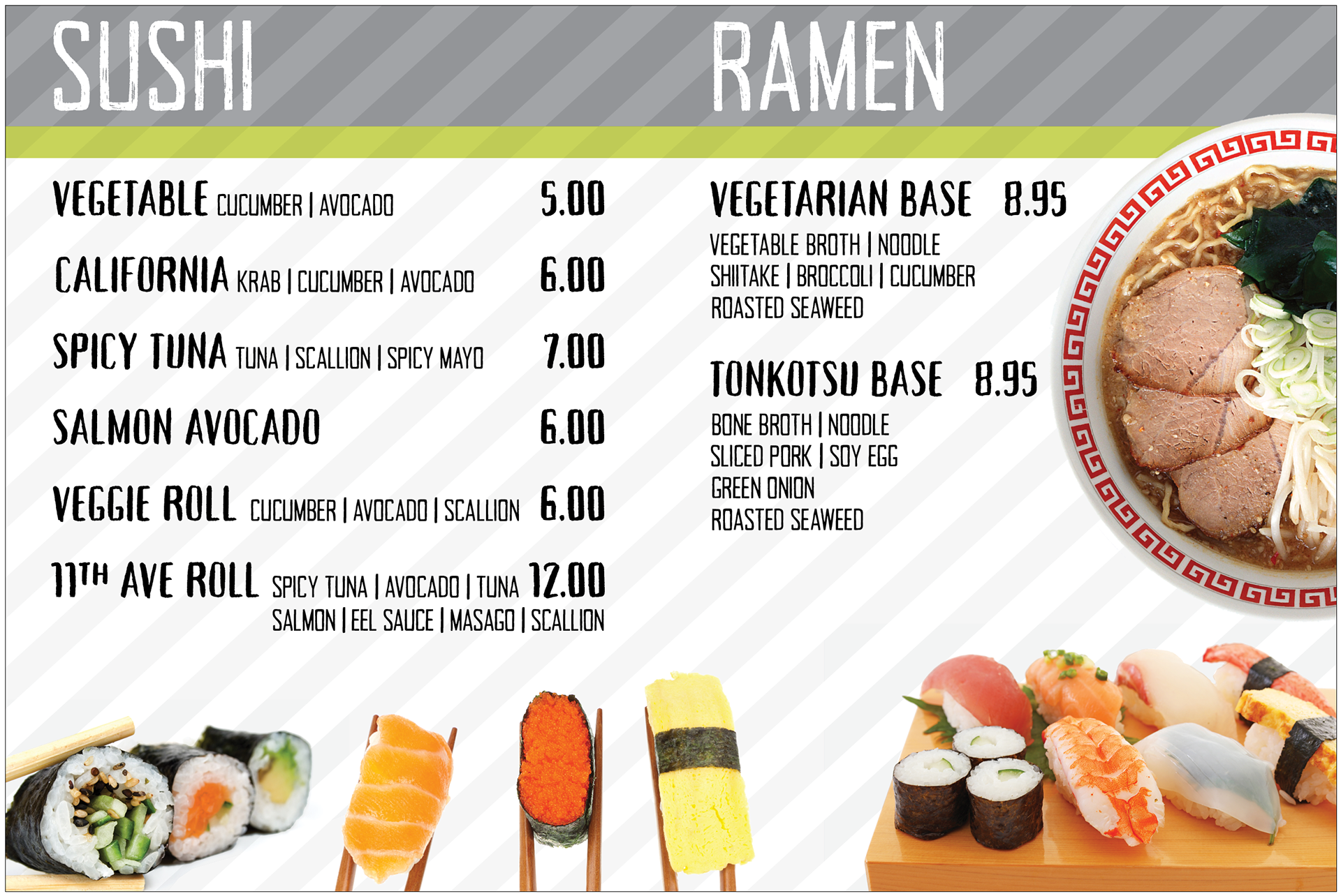 Menu Wall Graphics: Ramen, Sushi, Poke